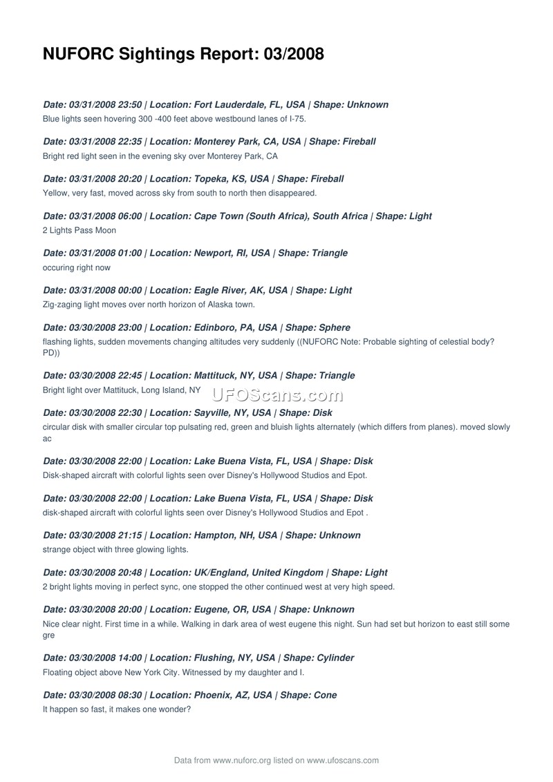 NUFORC Sightings Report: 03/2008