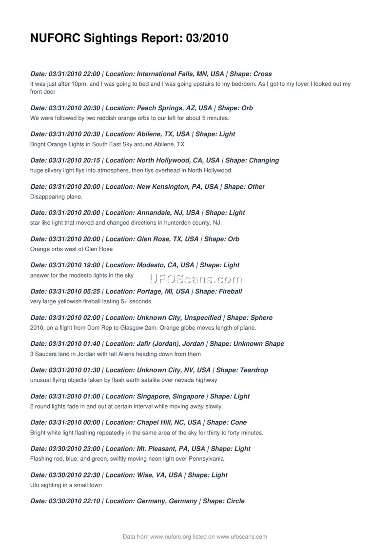 NUFORC Sightings Report: 03/2010