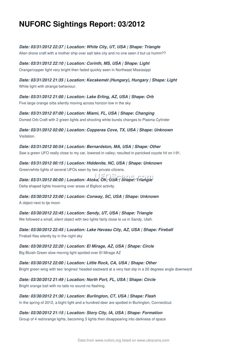 NUFORC Sightings Report: 03/2012