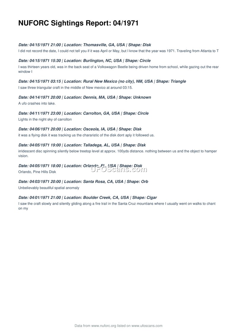 NUFORC Sightings Report: 04/1971