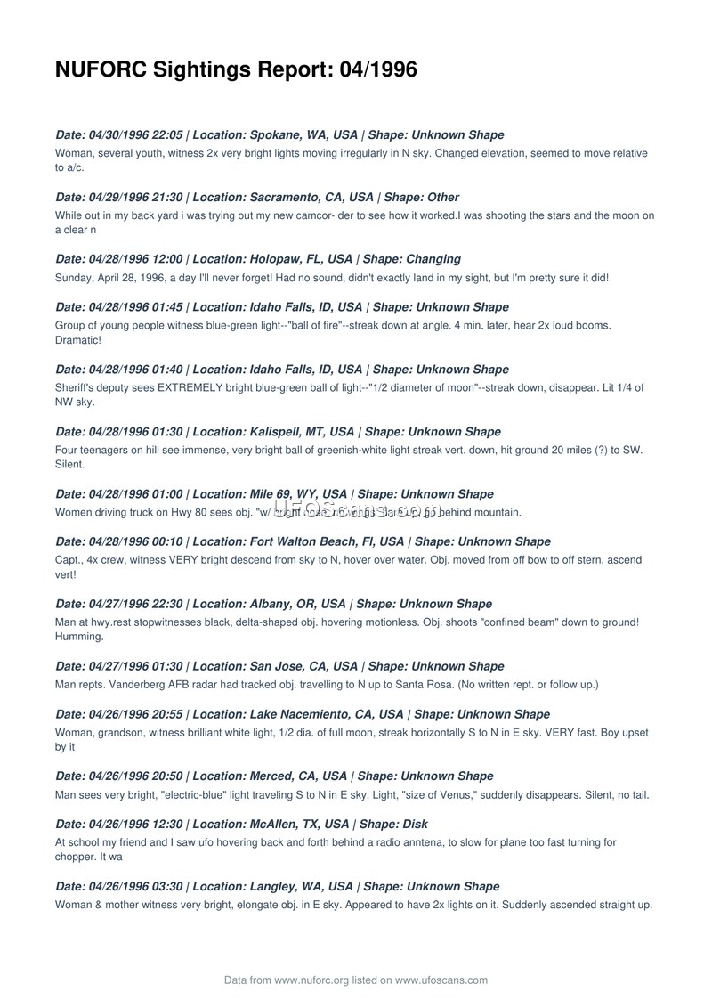 NUFORC Sightings Report: 04/1996