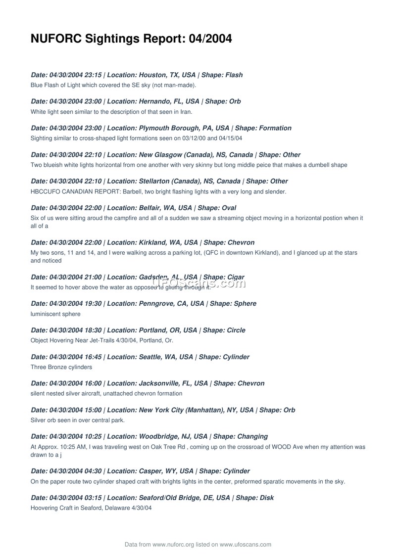 NUFORC Sightings Report: 04/2004
