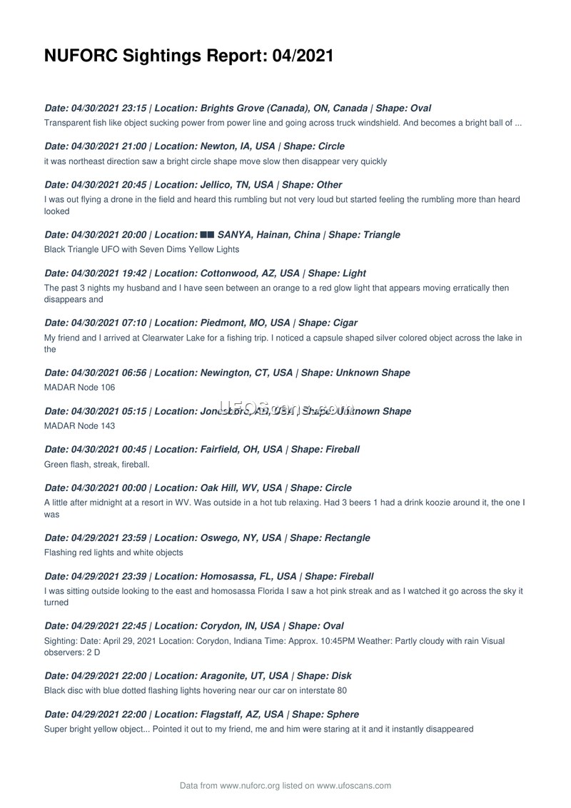 NUFORC Sightings Report: 04/2021