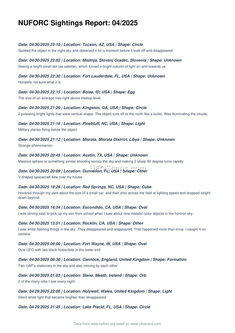 NUFORC Sightings Report: 04/2025