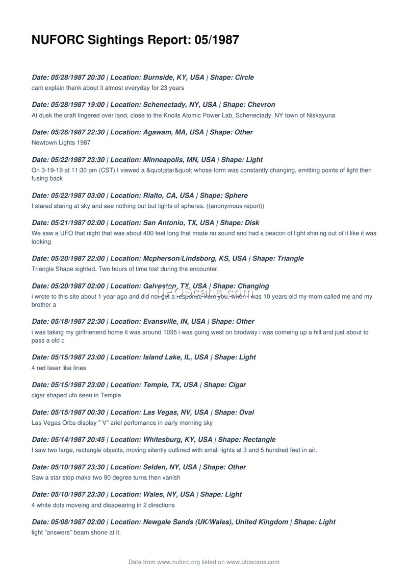 NUFORC Sightings Report: 05/1987