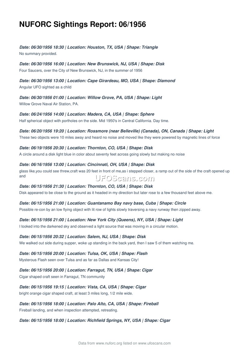 NUFORC Sightings Report: 06/1956