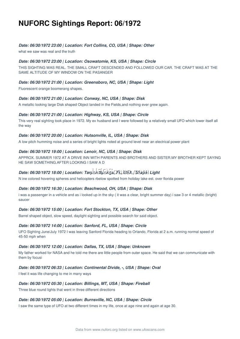 NUFORC Sightings Report: 06/1972