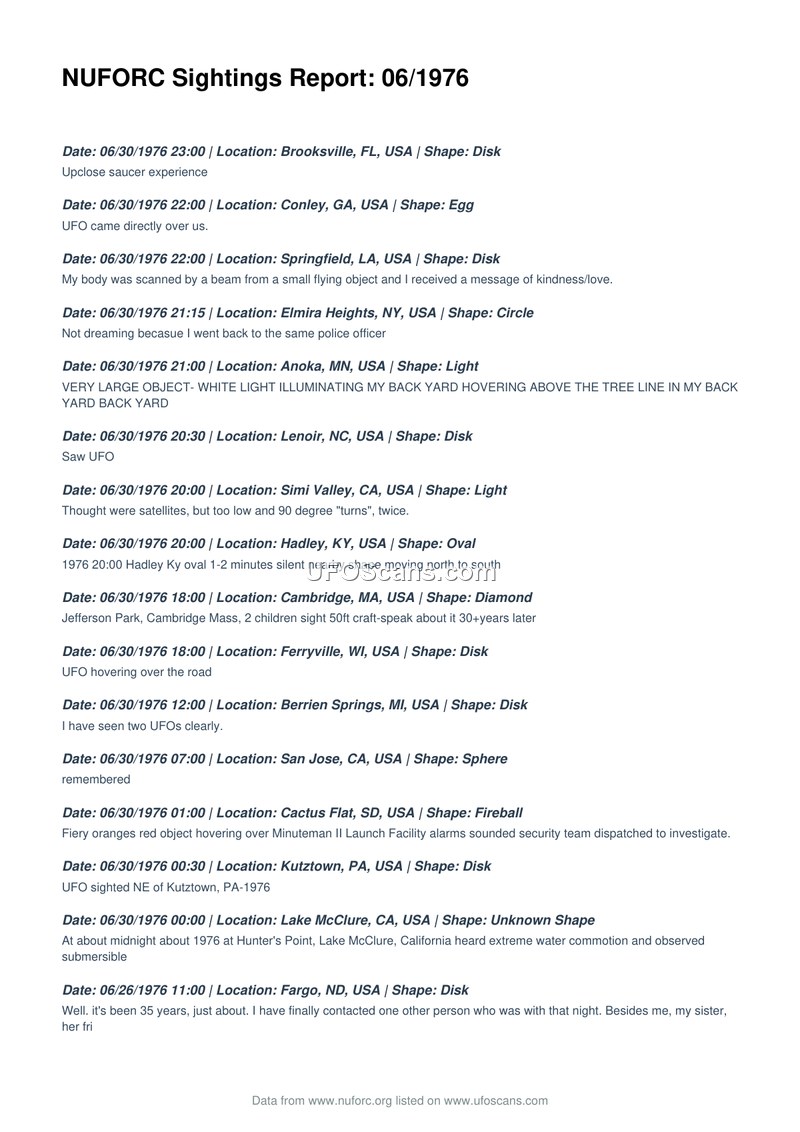NUFORC Sightings Report: 06/1976