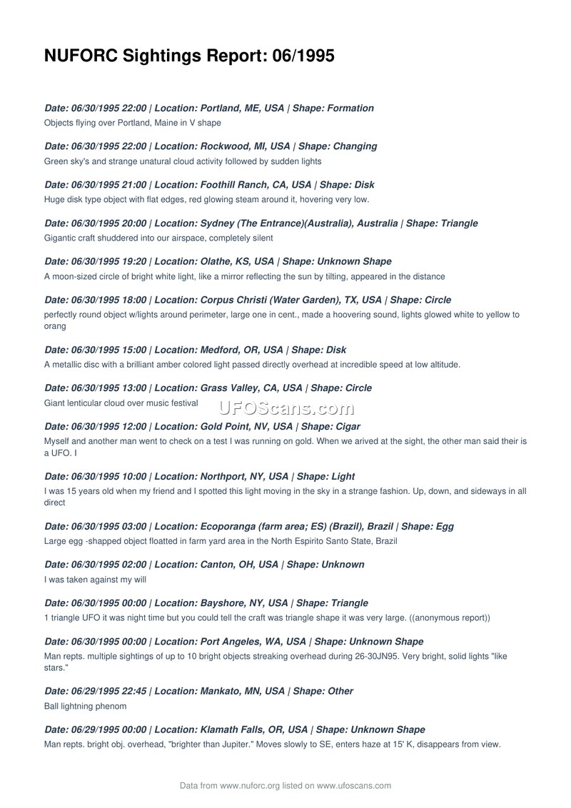 NUFORC Sightings Report: 06/1995