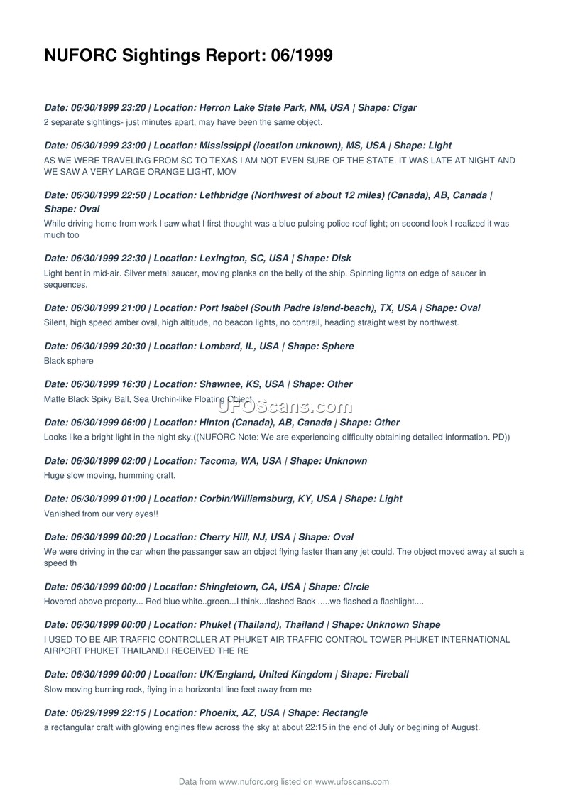 NUFORC Sightings Report: 06/1999