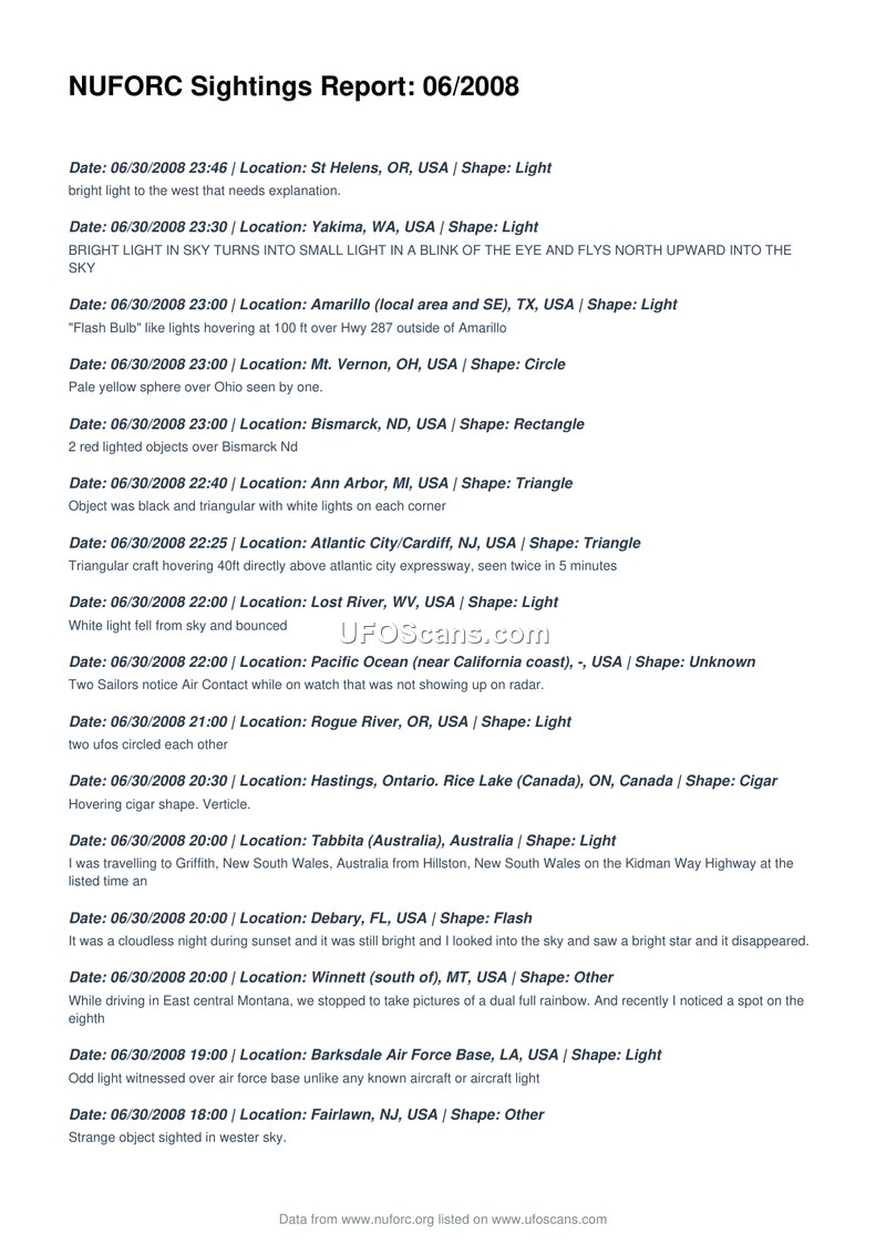 NUFORC Sightings Report: 06/2008
