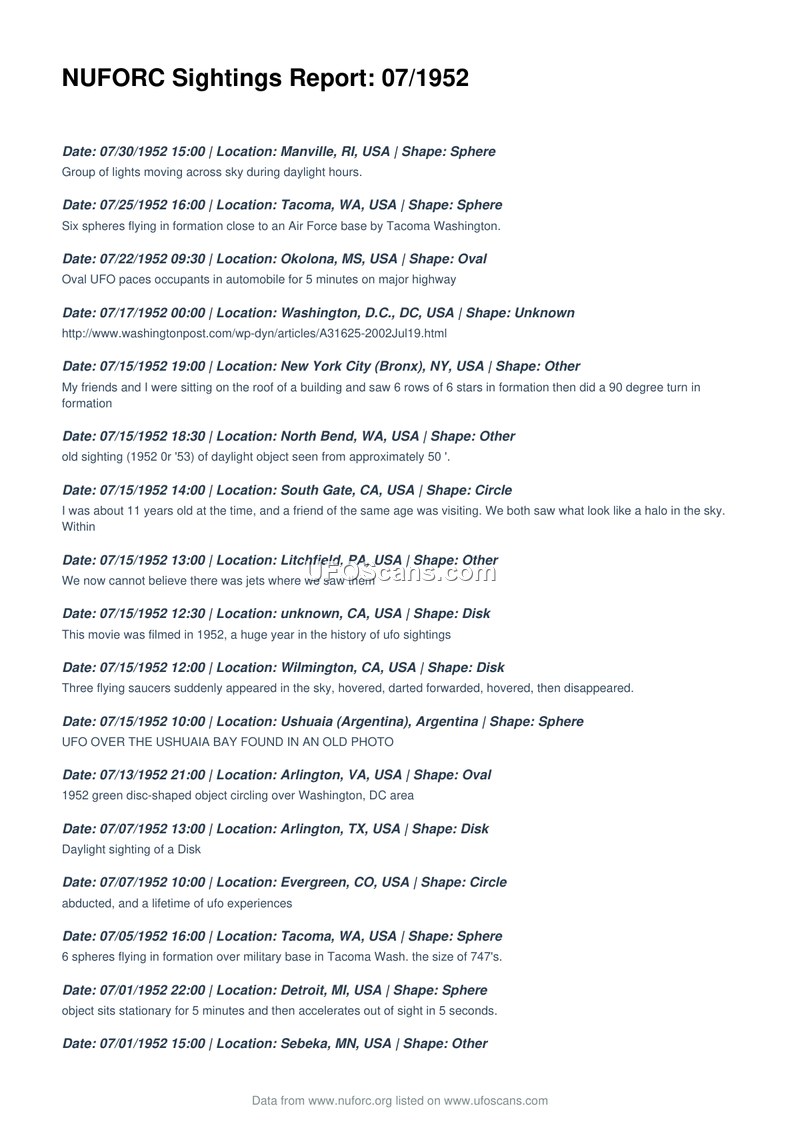 NUFORC Sightings Report: 07/1952