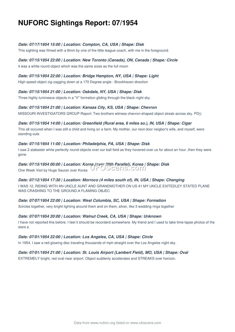 NUFORC Sightings Report: 07/1954