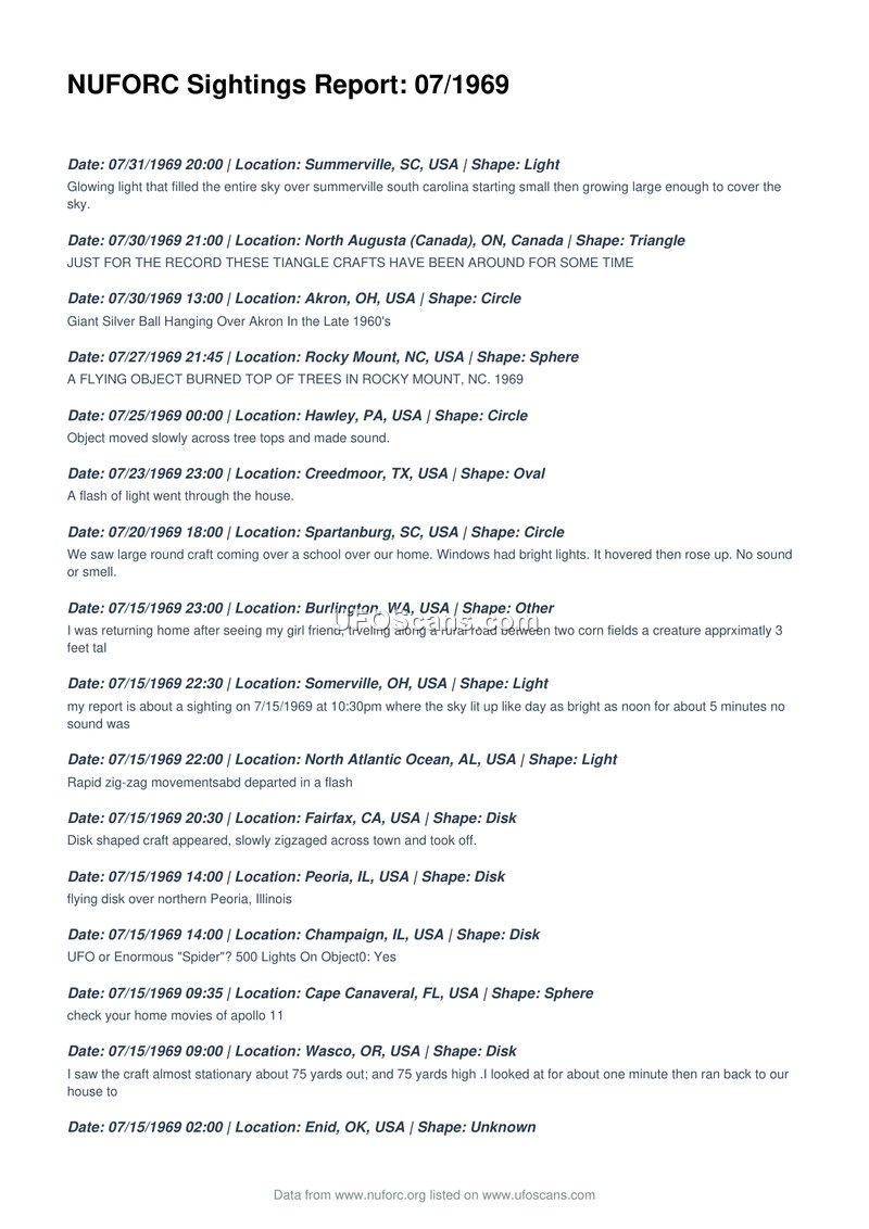 NUFORC Sightings Report: 07/1969