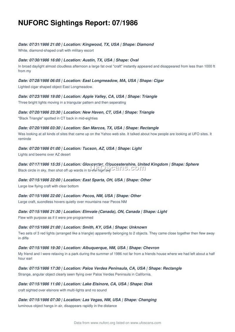 NUFORC Sightings Report: 07/1986