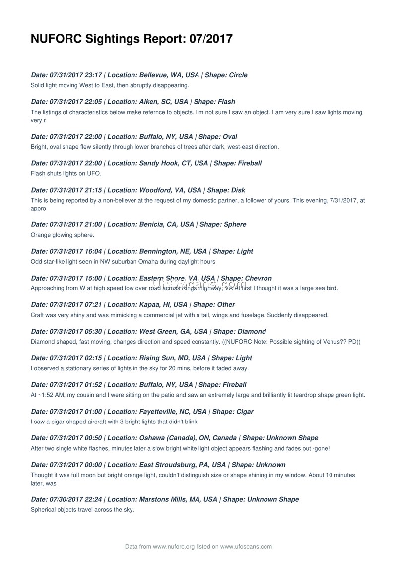 NUFORC Sightings Report: 07/2017