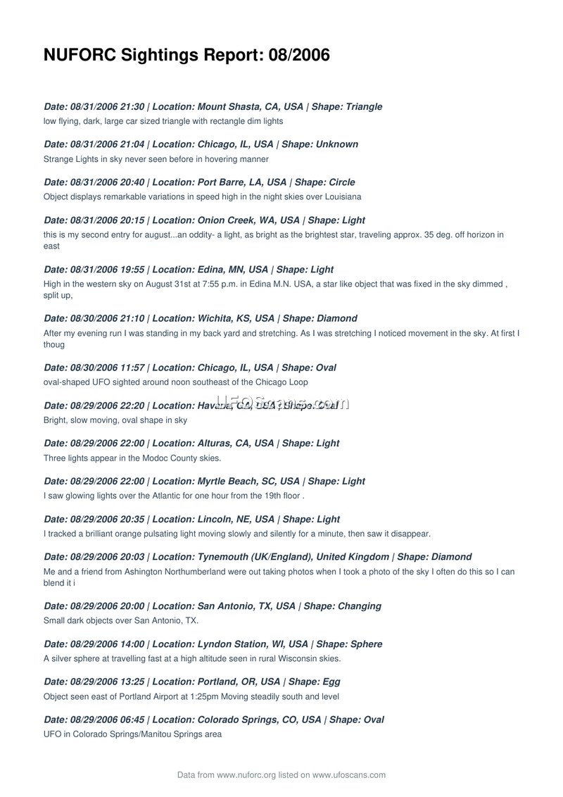 NUFORC Sightings Report: 08/2006