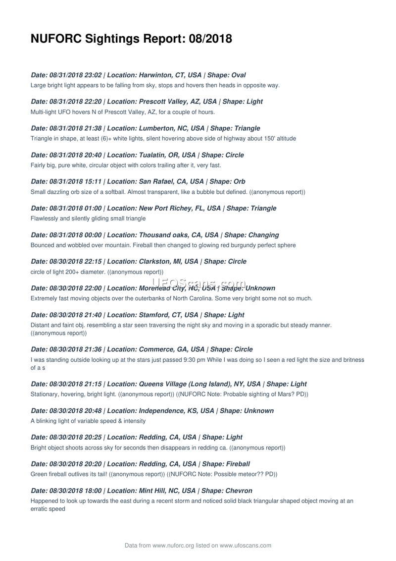 NUFORC Sightings Report: 08/2018