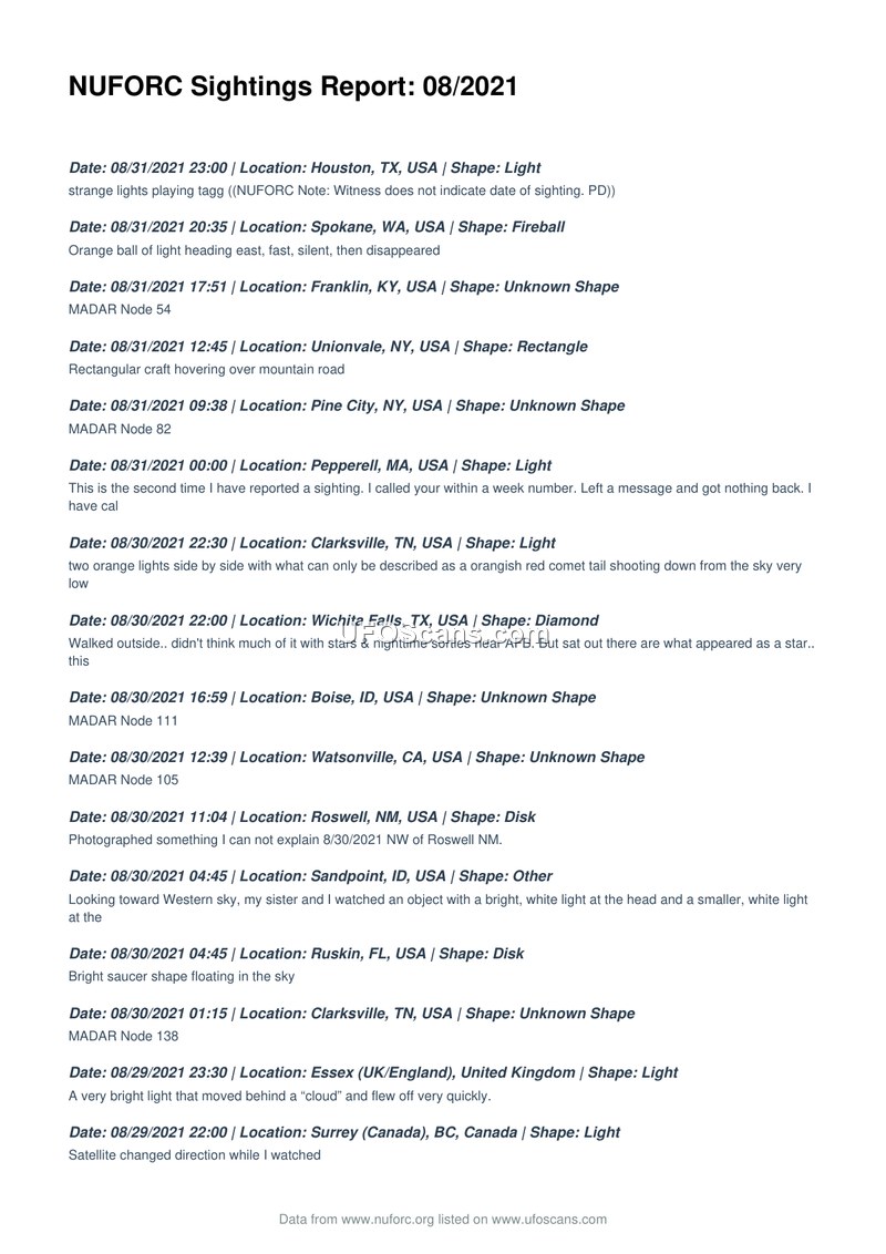NUFORC Sightings Report: 08/2021