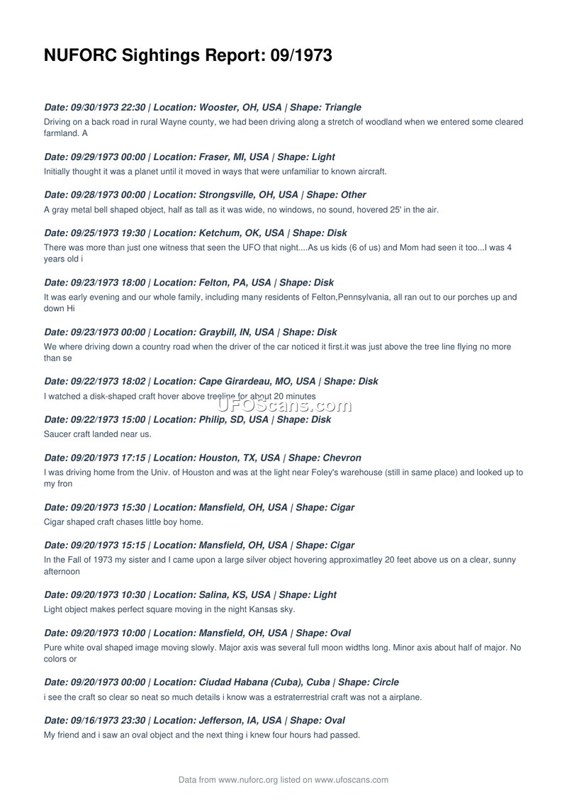NUFORC Sightings Report: 09/1973
