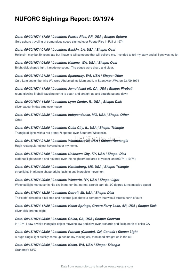 NUFORC Sightings Report: 09/1974