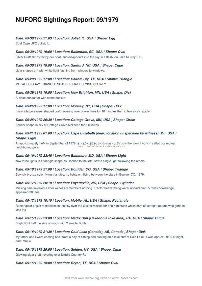 NUFORC Sightings Report: 09/1979