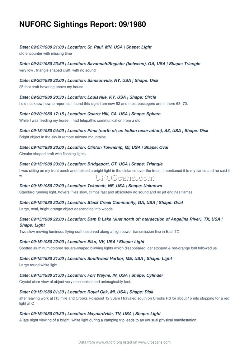 NUFORC Sightings Report: 09/1980