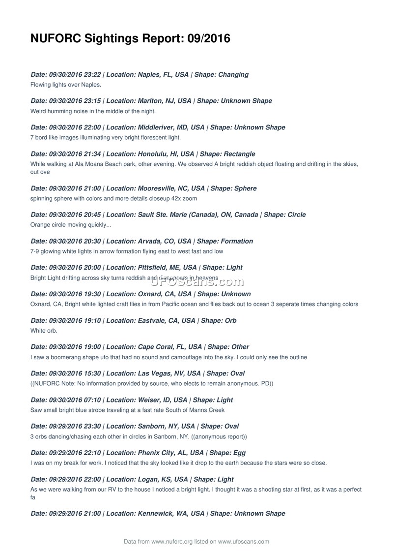 NUFORC Sightings Report: 09/2016