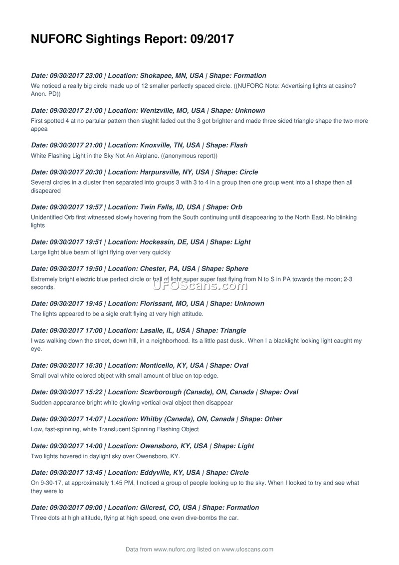 NUFORC Sightings Report: 09/2017