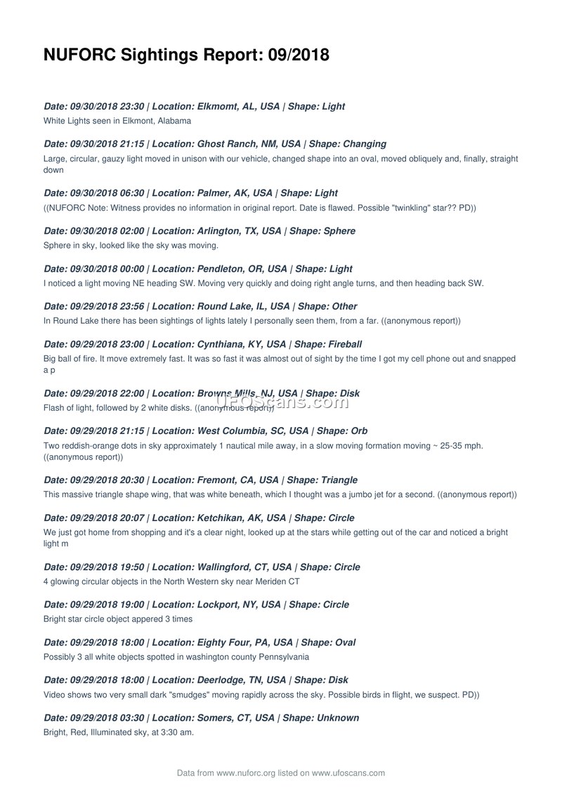 NUFORC Sightings Report: 09/2018