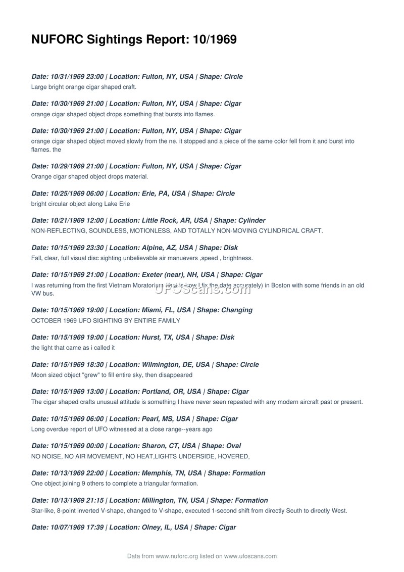 NUFORC Sightings Report: 10/1969
