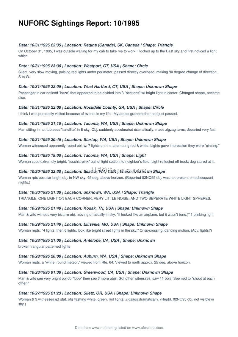 NUFORC Sightings Report: 10/1995