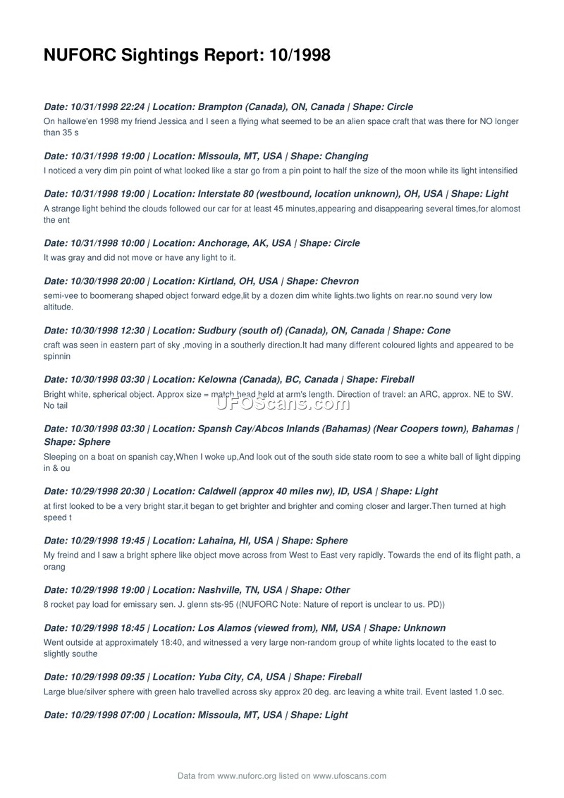 NUFORC Sightings Report: 10/1998