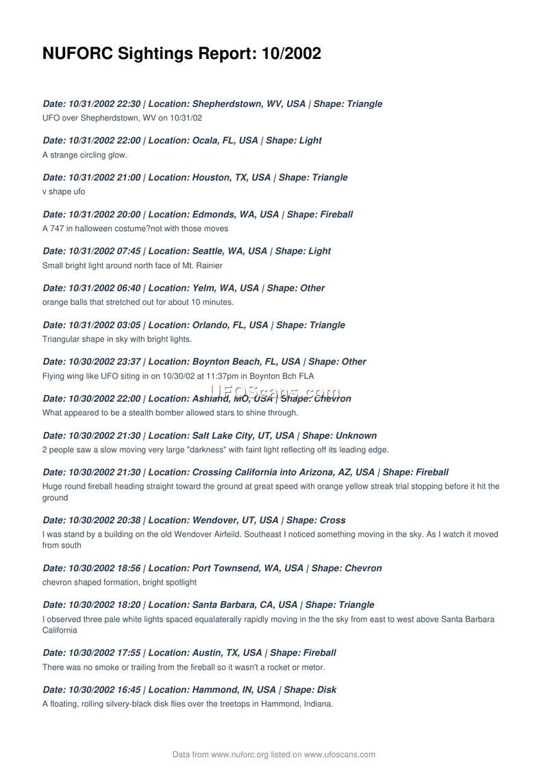 NUFORC Sightings Report: 10/2002