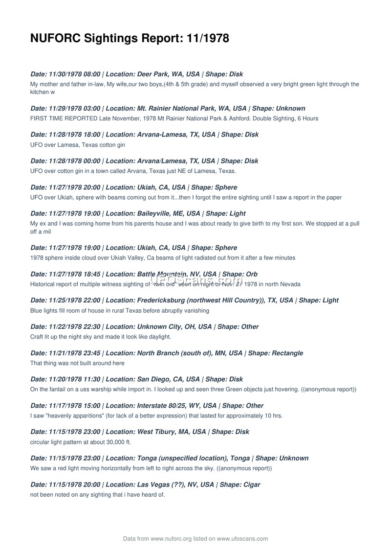NUFORC Sightings Report: 11/1978
