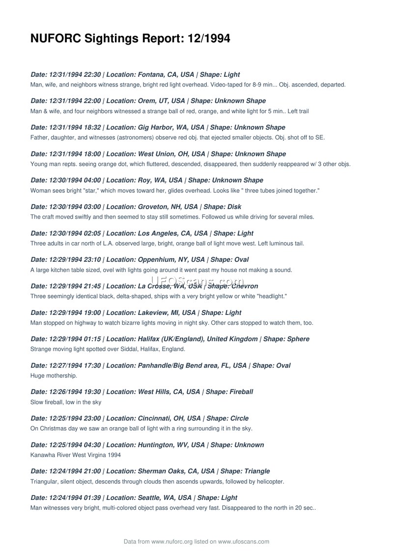 NUFORC Sightings Report: 12/1994
