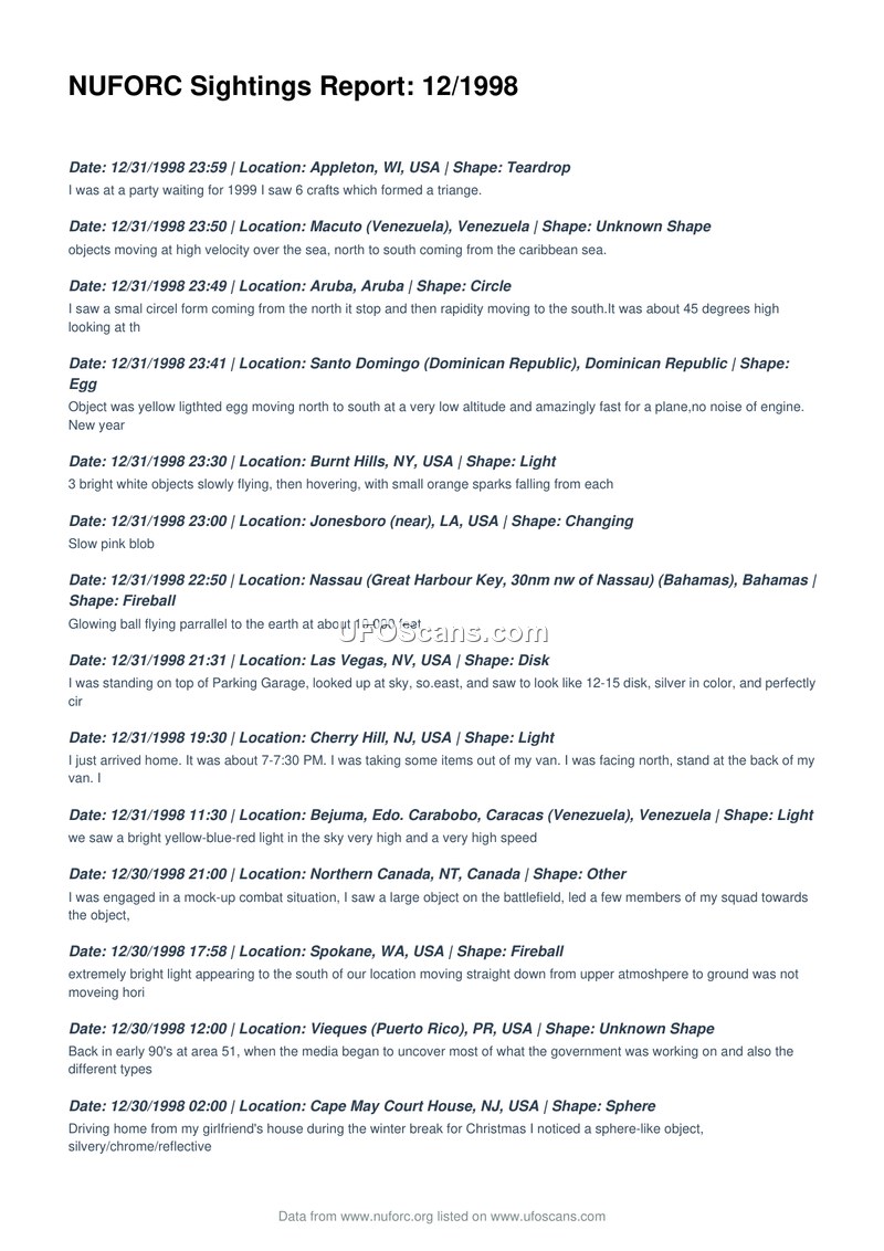 NUFORC Sightings Report: 12/1998