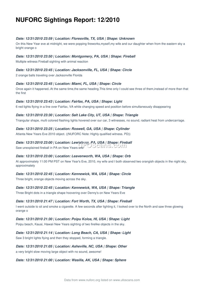 NUFORC Sightings Report: 12/2010