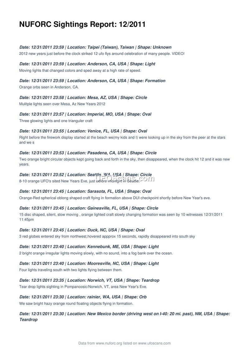 NUFORC Sightings Report: 12/2011