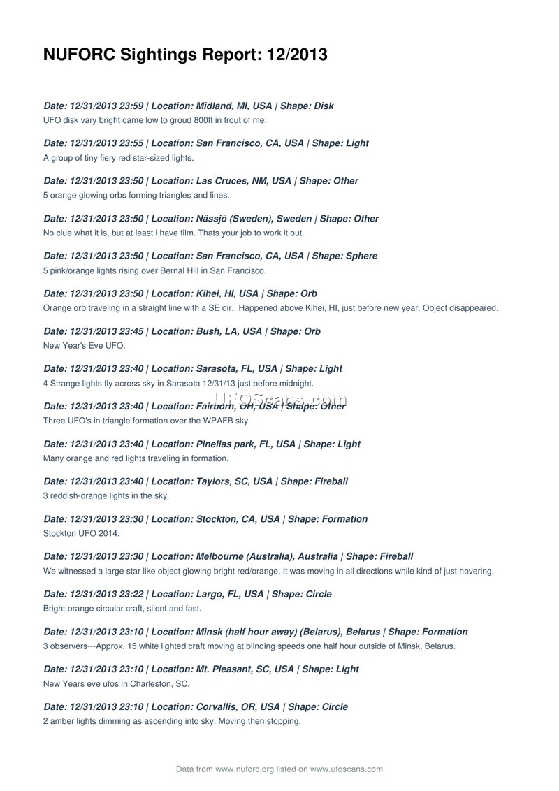 NUFORC Sightings Report: 12/2013