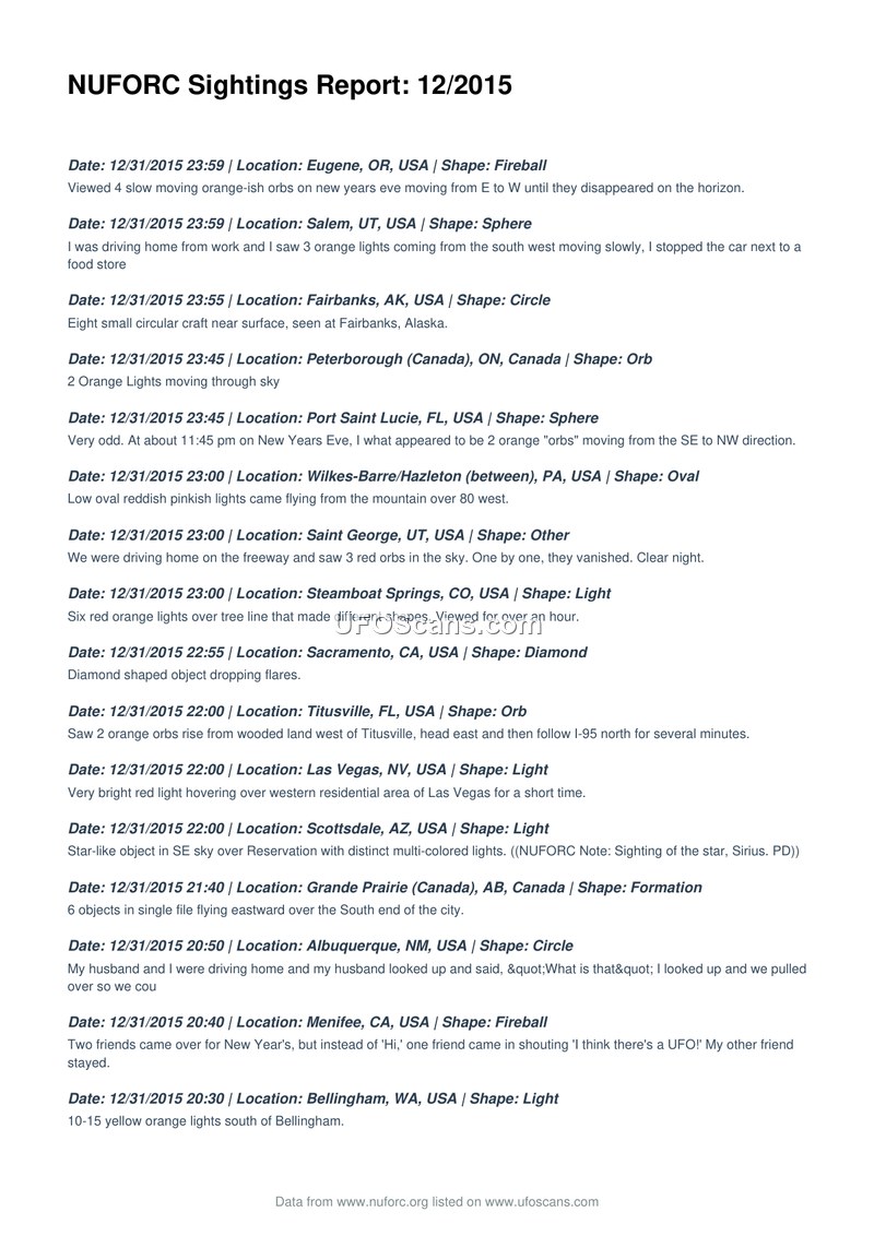 NUFORC Sightings Report: 12/2015
