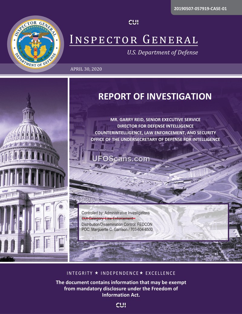 Report of Investigation: Mr. Garry P. Reid, Director for Defense Intelligence (Counterintelligence, Law Enforcement, and Security)