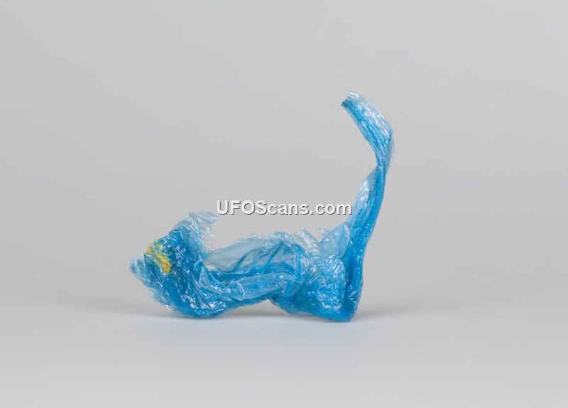 This document consists of the exterior of an archival folder from the USAF Historical Archives, located at Maxwell AFB, Alabama. The folder is labeled with the location 'Jackson, Tenn' and bears the date '7 Feb 1959'. It contains several reference numbers, including K243.6012-1, 7-3745-434, 1003524, and 341-10-474. The folder also features a red stamp reading 'SMC'. The provided images include two photographs of a blue, crumpled plastic-like object, which appear to be the contents or related items associated with this archival file.