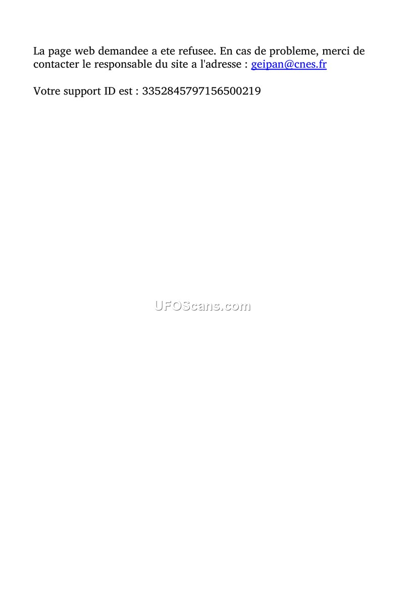 This document is a web server error message from the GEIPAN website. It indicates that a user was unable to access a specific page and provides contact information for technical support.