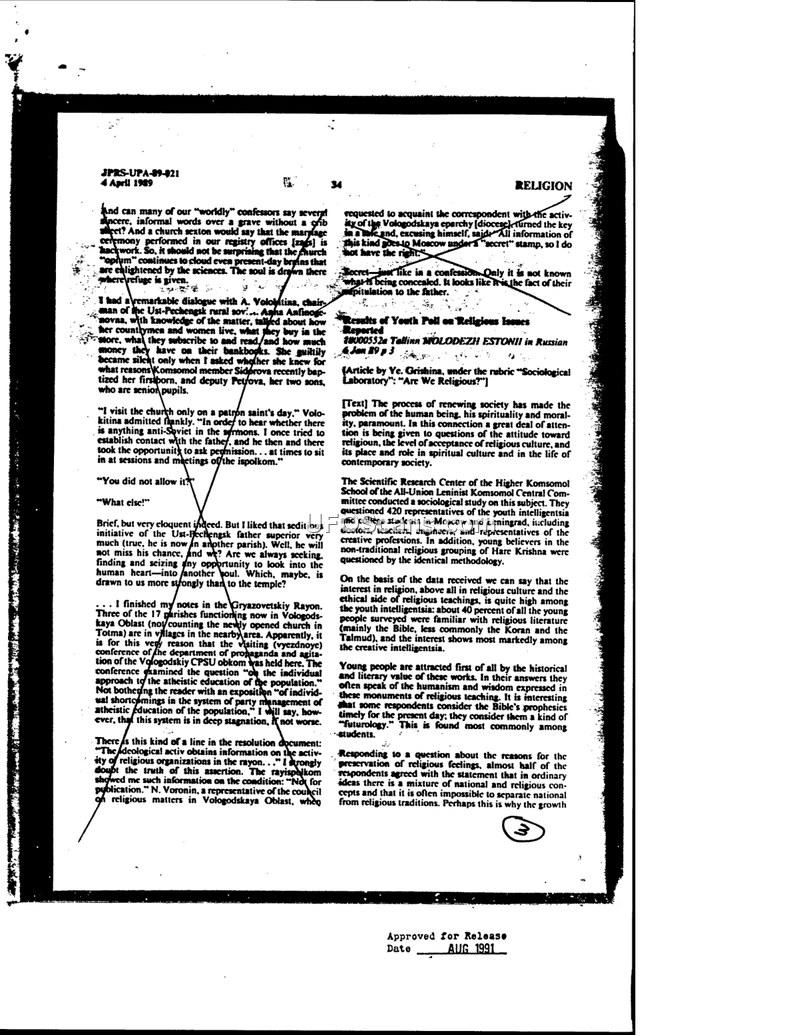 JPRS-UPA-89-021: Religion and Sociological Research in the Soviet Union