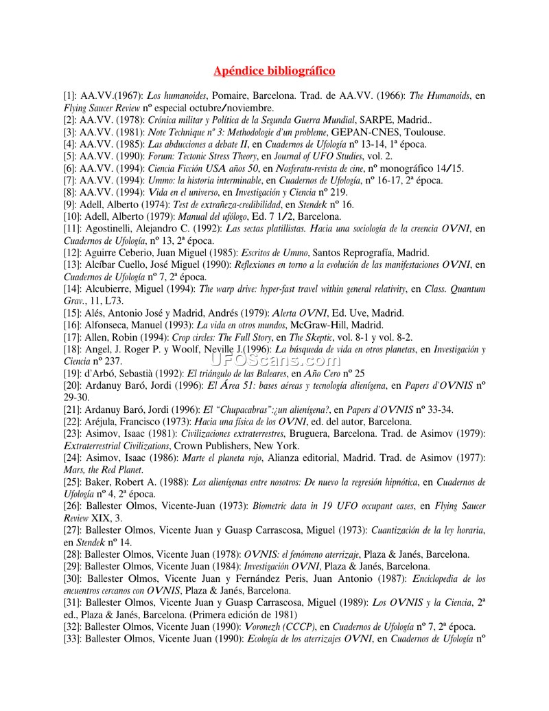 A bibliographic list of 267 entries covering international UFO literature from 1941 to 1997. It serves as a reference for historical, scientific, and sociological research on the UAP phenomenon.