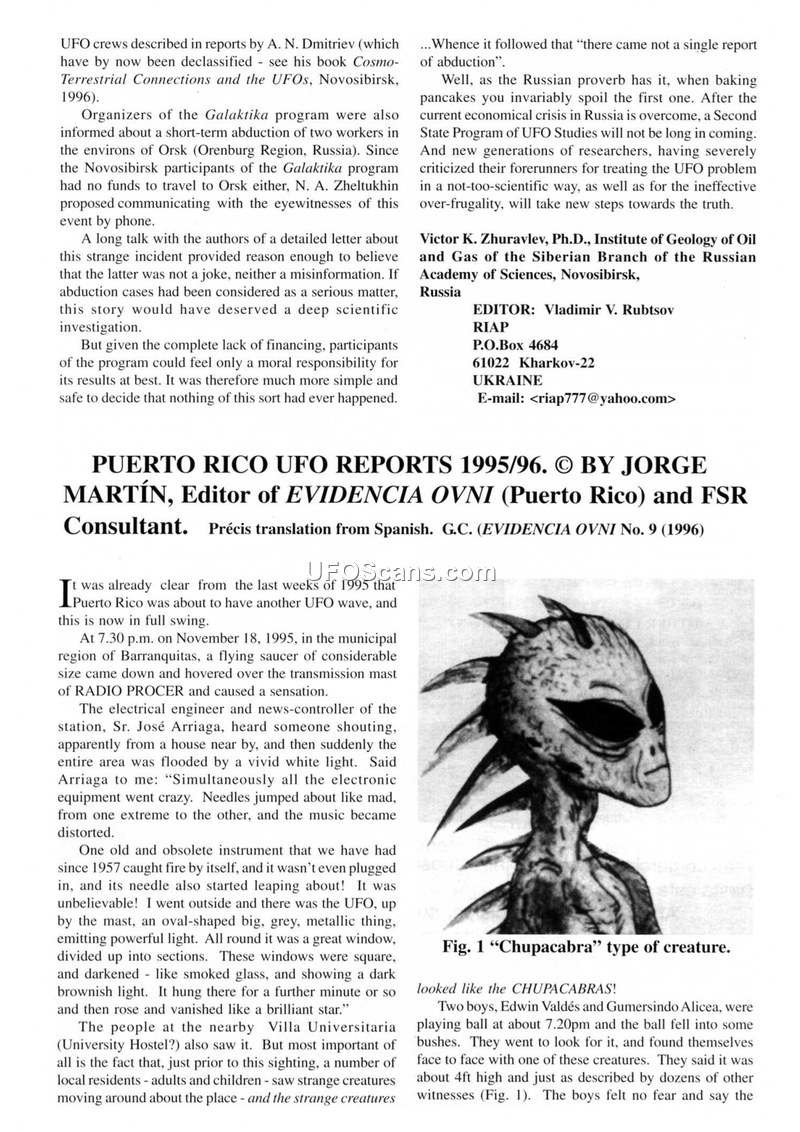PUERTO RICO UFO REPORTS 1995/96