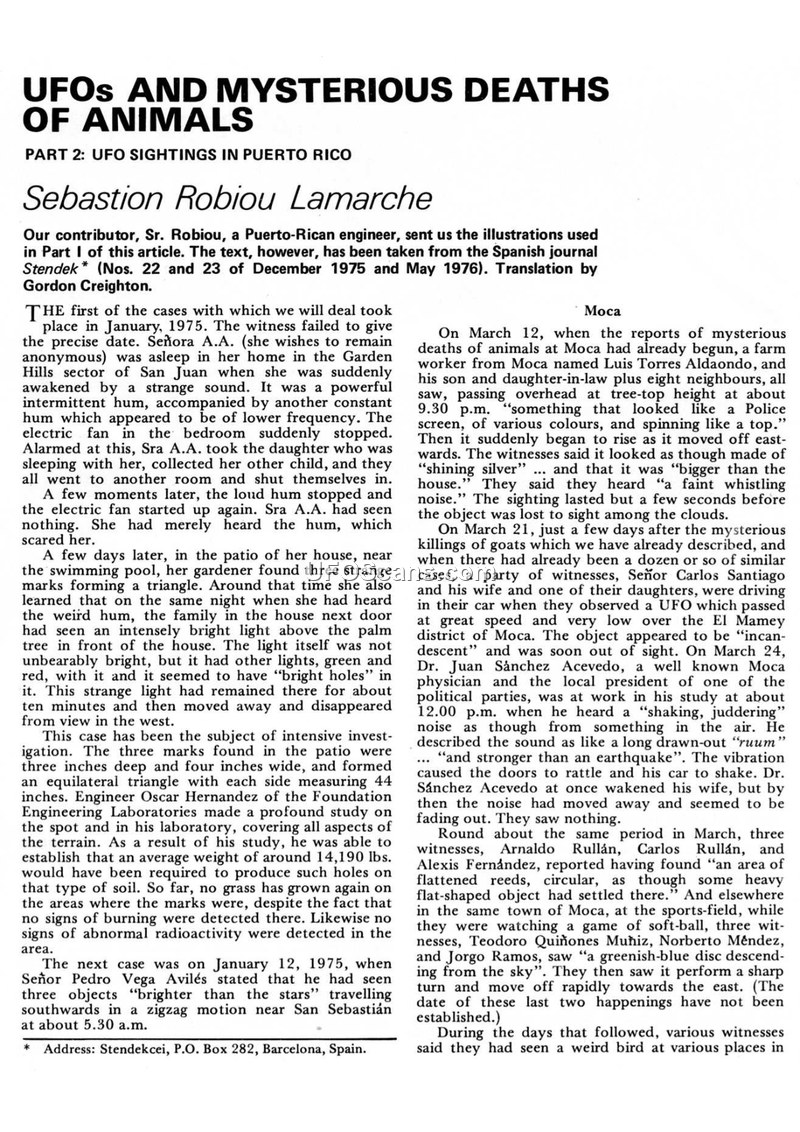 UFOS AND MYSTERIOUS DEATHS OF ANIMALS: PART 2: UFO SIGHTINGS IN PUERTO RICO