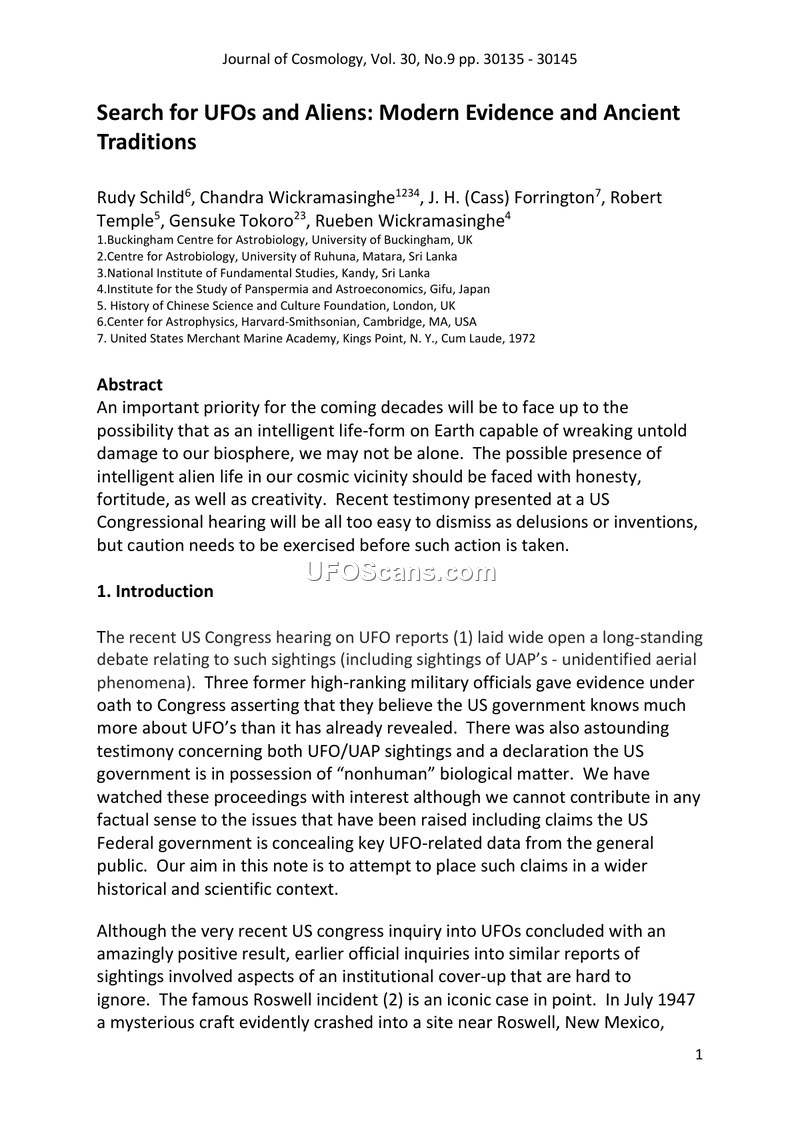 This academic paper, published in the Journal of Cosmology, explores the intersection of modern UFO/UAP reports and ancient traditions. The authors, a multi-disciplinary group of researchers, frame their discussion around recent US Congressional hearings regarding UAPs and claims of non-human biological material. They argue that while these claims are easily dismissed as delusions, they should be approached with caution and scientific rigor. The paper posits that many ancient myths and texts—including Vedic accounts of 'vimānas', Sumerian and Babylonian legends, and biblical narratives—may represent early attempts to describe genuine, technologically advanced phenomena that the authors lacked the vocabulary to explain. A significant portion of the paper is dedicated to the 'Sirius Mystery' and the Dogon tribe of Mali. The authors discuss the work of Robert Temple and French anthropologists Marcel Griaule and Germaine Dieterlen, who documented the Dogon's detailed knowledge of the Sirius star system, including the existence of the companion star Sirius B, which was not discovered by modern astronomers until long after the Dogon traditions were established. The authors suggest this knowledge implies an ancient alien connection. Furthermore, the paper addresses other 'unsolved mysteries,' such as the Nazca lines, Stonehenge, and anomalous artifacts found in coal deposits, suggesting these may be evidence of past extraterrestrial interaction. The authors also explore the Fermi Paradox, proposing that humanity might be under a 'cosmic quarantine' due to its inherent violence, or that Earth is being treated as a long-term experiment by galactic observers. They conclude by emphasizing the importance of analyzing any recovered non-human biological material to determine if it shares terrestrial biochemistry, which would support the theory of panspermia. The authors urge humanity to focus on cultural and artistic pursuits to prove itself worthy of respect by advanced alien civilizations.