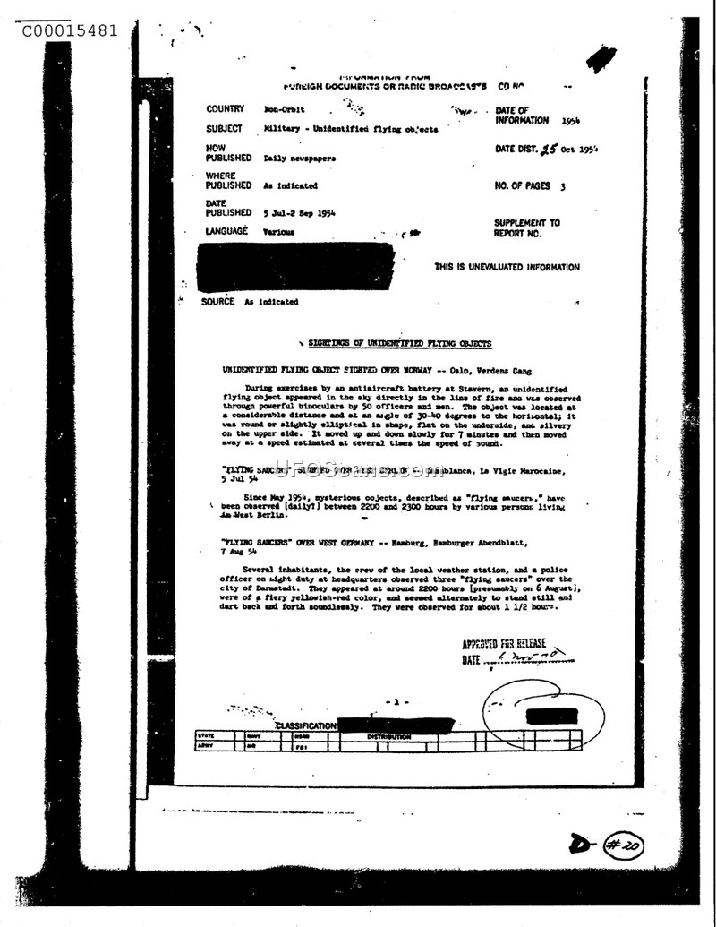 INFORMATION FROM FOREIGN DOCUMENTS OR RADIO BROADCASTS: Unidentified flying objects